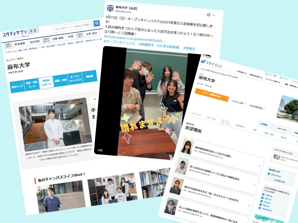 また、スタディサプリやマナビジョンなど受験生必見のwebメディアにおいては、取材を通して麻布大学の魅力を等身大目線で発信するなど、活躍の場は多岐にわたります。